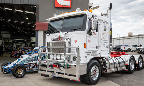 Just outside the workshop entrance, the excitement continued with BJ & AC Roberts’ striking speedway race car, Campbell Earthmoving’s K100G, and Castrol’s Mustang proudly showcased for all to admire.